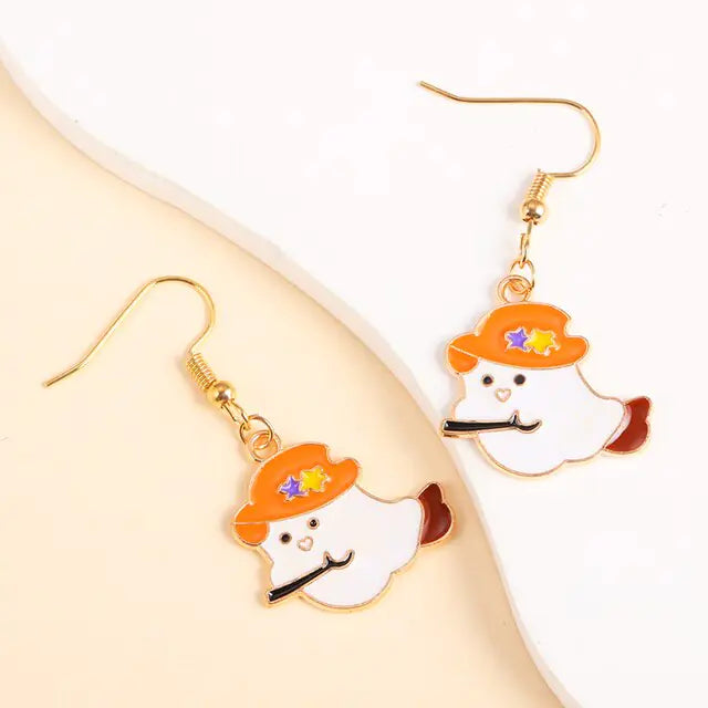 Embrace the Spirit of Halloween: Cute Enamel Dangle Earrings!